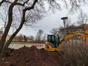 Auf Schloss Sondershausen sind die ersten Bagger im Rahmen des Sonderinvestitionsprogramms I (SIP I) der Stiftung Thüringer Schlösser und Gärten (STSG) angerollt. Zwischen Theaterwiese und Marstallvorplatz wird im SIP I eine neue Löschwasserzisterne eingebaut. Die Baumaßnahmen haben in dieser Woche mit der Vorbereitung des Baufeldes begonnen. Durch die Stadtwerke werden im Bereich der späteren Baugrube Leitungen umverlegt. Der Einbau der Zisterne soll vor Beginn der Schlossfestspiele im Frühsommer abgeschlossen werden.