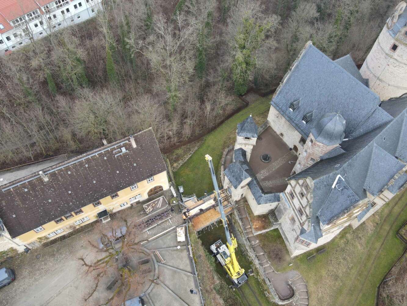 – Einheben der neuen Burgbrücke auf dem Oberschloss Kranichfeld, Foto: STSG, Carolin Schart