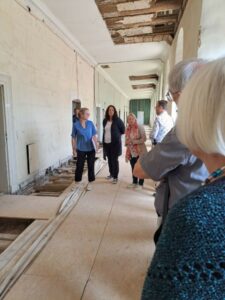– Sabine Jeschke, Silvia Wagner und Dr. Doris Fischer (v.l.n.r.) von der STSG Erläutern die Baumaßnahmen auf Schloss Friedenstein, Foto STSG, Anke Pennekamp