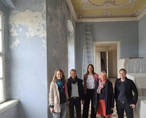 Rundgang vor Beginn der Bauarbeiten auf Schloss Heidecksburg (v.l.n.r.):Referatsleiterin Sonderinvestitionsprogramm I Dipl.-Ing. Arch. Carola Niklas, Projektleiterin Heidecksburg Dipl.-Ing. Arch. Carolin Schart (beide STSG), Sabrina Lüderitz M.A. (Direktorin des TLMH), Dr. Doris Fischer (Direktorin der STSG), Dr. Sandy Reinhard (stellvertretende Direktorin des TLMH), Foto STSG, Anke Pennekamp