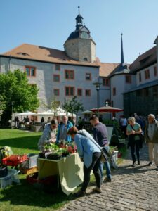 Am 11. Mai lädt die Stiftung Thüringer Schlösser und Gärten zur jährlichen Pflanzenbörse auf den Dornburger Schlössern bei Jena ein. Von 10 bis 15 Uhr gibt es im Hof des Alten Schlosses ein umfangreiches Angebot an Gemüsepflanzen, Sommerblumen, Kakteen, Gehölzen, aber auch Töpferwaren und regionalen Produkten. Das Team der Dornburger Schlossgärten ist auch dabei und bietet unter anderem die international prämierte Dornburger Schlossrose und Saft aus dem Obst der Schlossgärten an. Für jüngere Gäste gibt es einen Basteltisch.