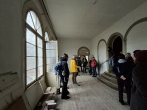 Der Pavillon im Schlosspark Molsdorf diente als authentisches Fallbeispiel für den eintägigen Workshop, um die Möglichkeit von Dämmungen an der Innenseite von Außenwänden auszuloten. „Gemeinsam haben wir diskutiert, mit welchen Technologien und Methoden wir wirkungsvolle und verträgliche Lösungen hinbekommen können“, berichtet Baureferent Stephan Laub von der STSG. „Immerhin haben wir es mit einem Baudenkmal zu tun, das zudem noch bauphysikalisch äußerst komplex ist.“ Im Mittelpunkt der Gespräche standen Materialien wie Lehm, Stroh und Holzwerkstoffe, die ohnehin am Denkmal vorkommen und zudem das wichtige Projektziel der Nachhaltigkeit erfüllen.