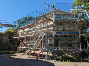 Auf Schloss Altenstein werden die Bauarbeiten im Rahmen des Sonderinvestitionsprogramms I (SIP I) der Stiftung Thüringer Schlösser und Gärten (STSG) sichtbar. Während im Schloss haustechnische Installationen voranschreiten, haben auch am historischen Küchenbau die Bauarbeiten im SIP I begonnen.