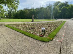 Abbildung: Noch geschützt – wiederhergestelltes Staudenbeet im Schlosspark Molsdorf, Foto: Stiftung Thüringer Schlösser und Gärten, Jonathan Simon
