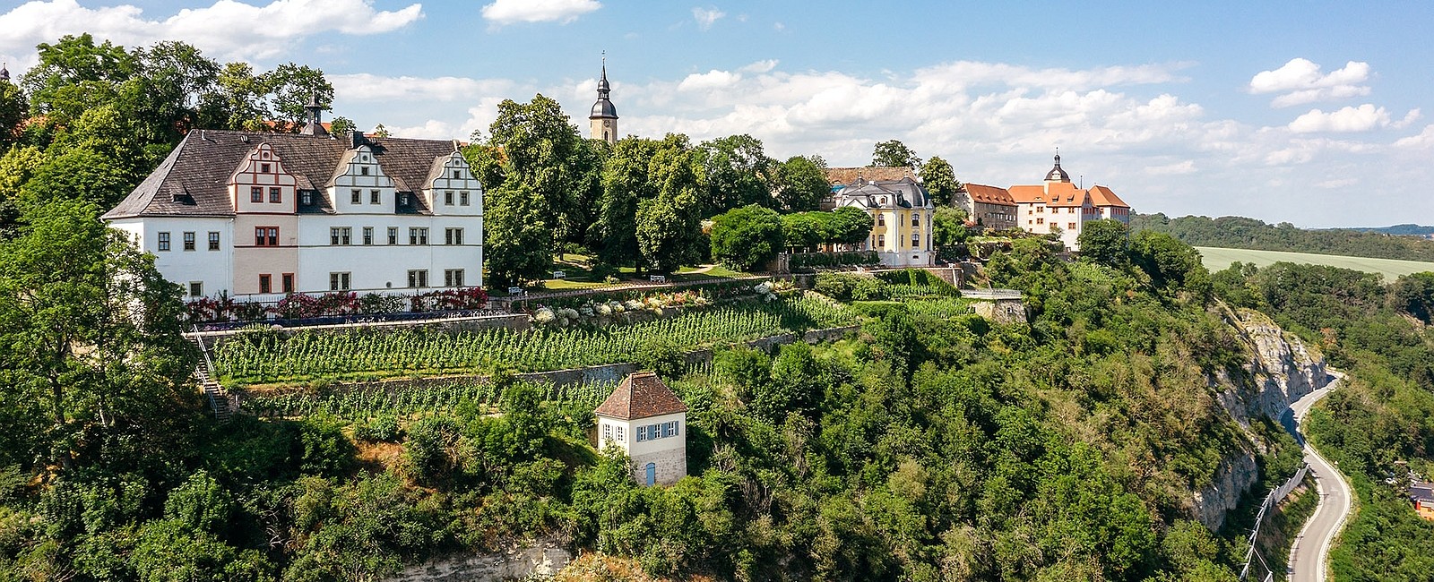 Drei Schlösser, drei Charaktere – das einzigartige Ensemble der Dornburger Schlösser thront auf einem Felsen über dem Saaletal. Die Herzöge von Sachsen-Weimar-Eisenach schätzten den „Balkon Thüringens“ als Sommerresidenz. Mehr als 800 Jahre Geschichte sind hier vereint. Das Alte Schloss birgt Reste einer mittelalterlichen Burg. Das Rokokoschloss ist ein galantes Lustschloss des 18. Jahrhunderts mit Porzellansammlung. Das Renaissanceschloss ist eng mit Johann Wolfang von Goethe verbunden. Der schwärmte für die liebevoll gepflegten Schlossgärten – sie sind ein Hochgenuss für Flaneure und Rosenliebhaber. Auch der Wein vom Dornburger Schlossberg ist damals wie heute beliebt.