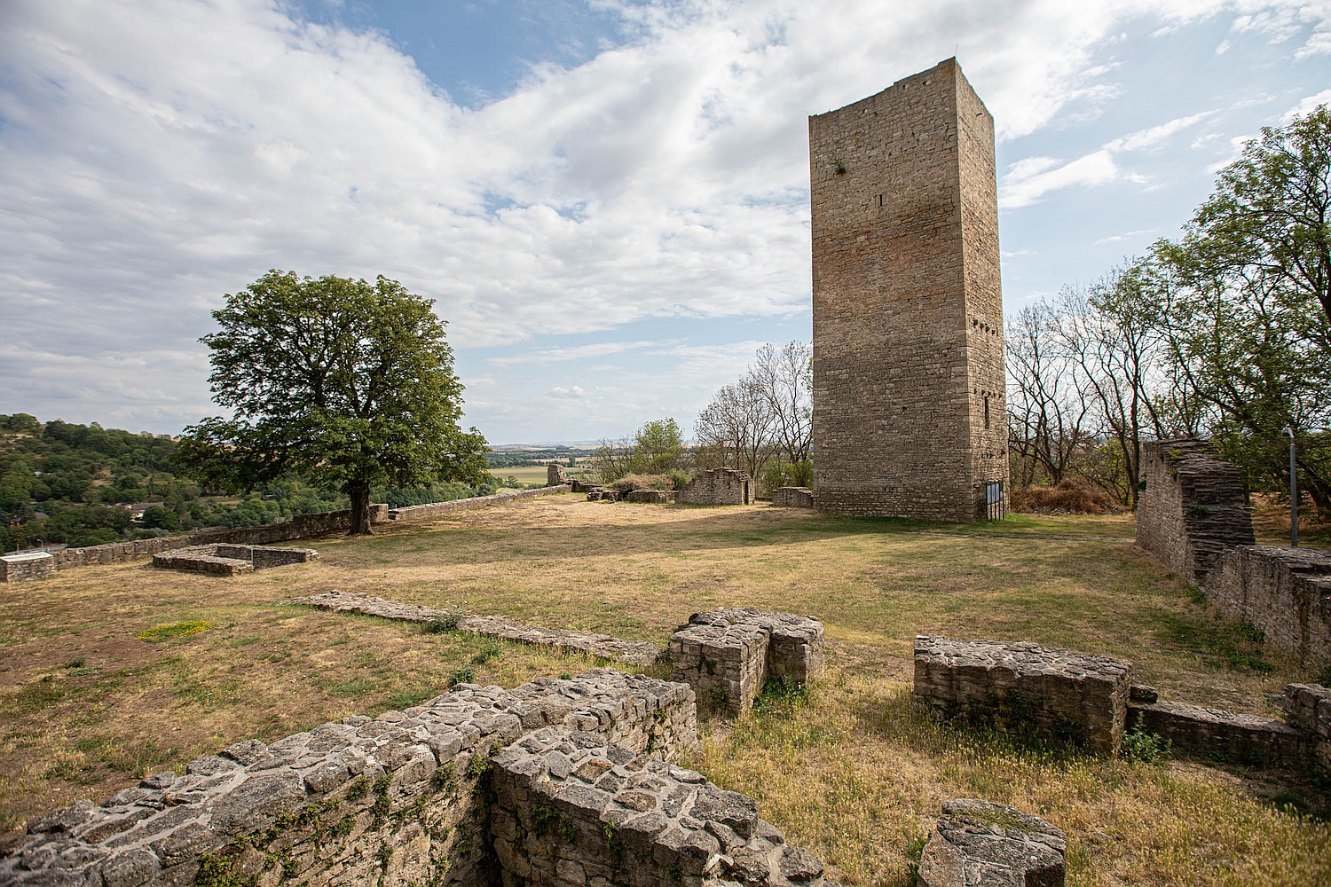 Wer schon einmal durch die Thüringer Pforte fuhr, mag sie vielleicht entdeckt haben – die Obere und die Untere Sachsenburg. Zwei Wächtern gleich erheben sich die beiden Wehranlagen auf dem sogenannten Wächterberg. Erbaut wurden sie im 13. Jahrhundert, nur 500 Meter voneinander entfernt. Beide Burgen haben eine wechselvolle Geschichte hinter sich. Markant sind vor allem die Bergfriede, die noch immer stolz aus den Baumkronen hervorragen.