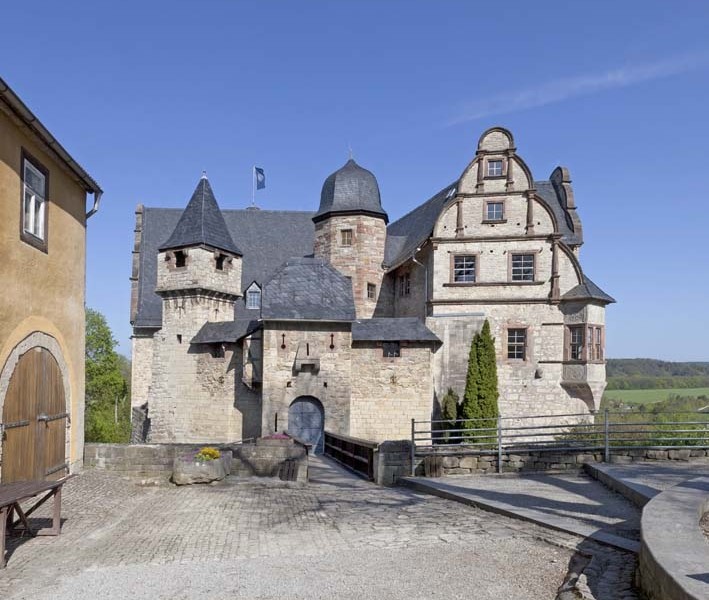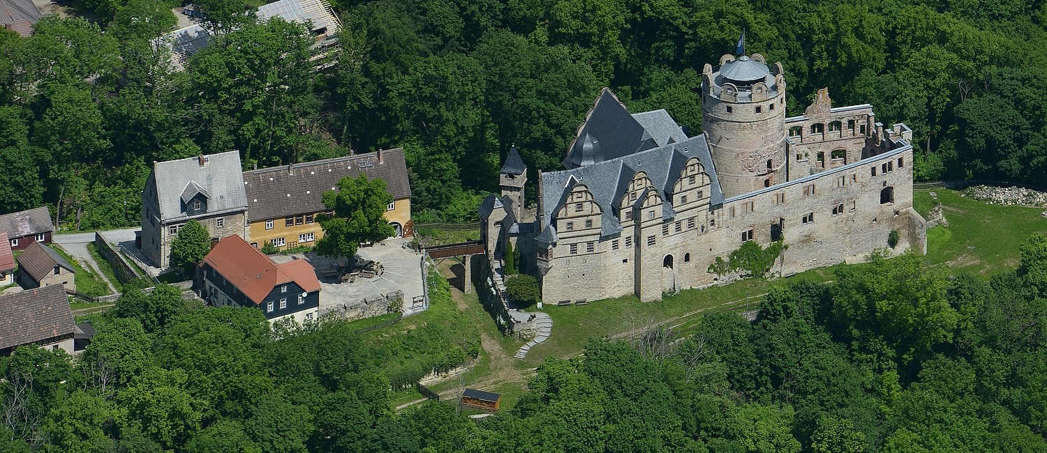 Umgeben malerischen Bergen und Wäldern im Weimarer Land, weithin sichtbar – liegt das Oberschloss Kranichfeld. Es thront auf einem Bergsporn über der Zwei-Burgen-Stadt Kranichfeld. Auf den ersten Blick sieht das Renaissanceschloss vollkommen intakt aus. Doch von der Hauptburg haben sich nur die Außenmauern erhalten. Das Innere wurde 1934 bei einem Brand zerstört. Der Ausstellungsrundgang führt Besucher von der Vorburg u.a. zum Palas, den „Dicken Turm“, der Kapelle und den Keller. Eine Kuriosität des Schlosses ist der sogenannte „Leckarsch“ an einem Erker.