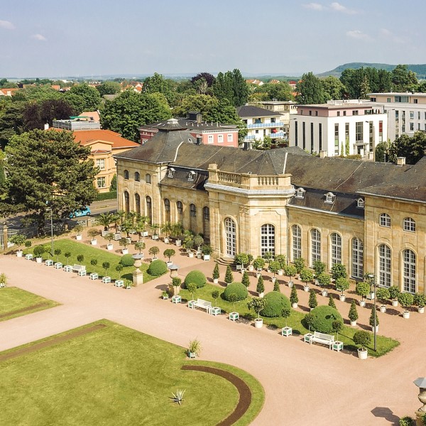Der Orangeriegarten dagegen wurde meisterhaft in den Boden vertieft und bekam auf diese Weise die Anmutung eines Amphitheaters mit Blick zum Schloss Friedrichsthal. Flankiert wird der Garten von zwei Orangeriegebäuden sowie im Norden von einem Treibhaus. Das südliche Pendant wurde im Zweiten Weltkrieg zerstört.