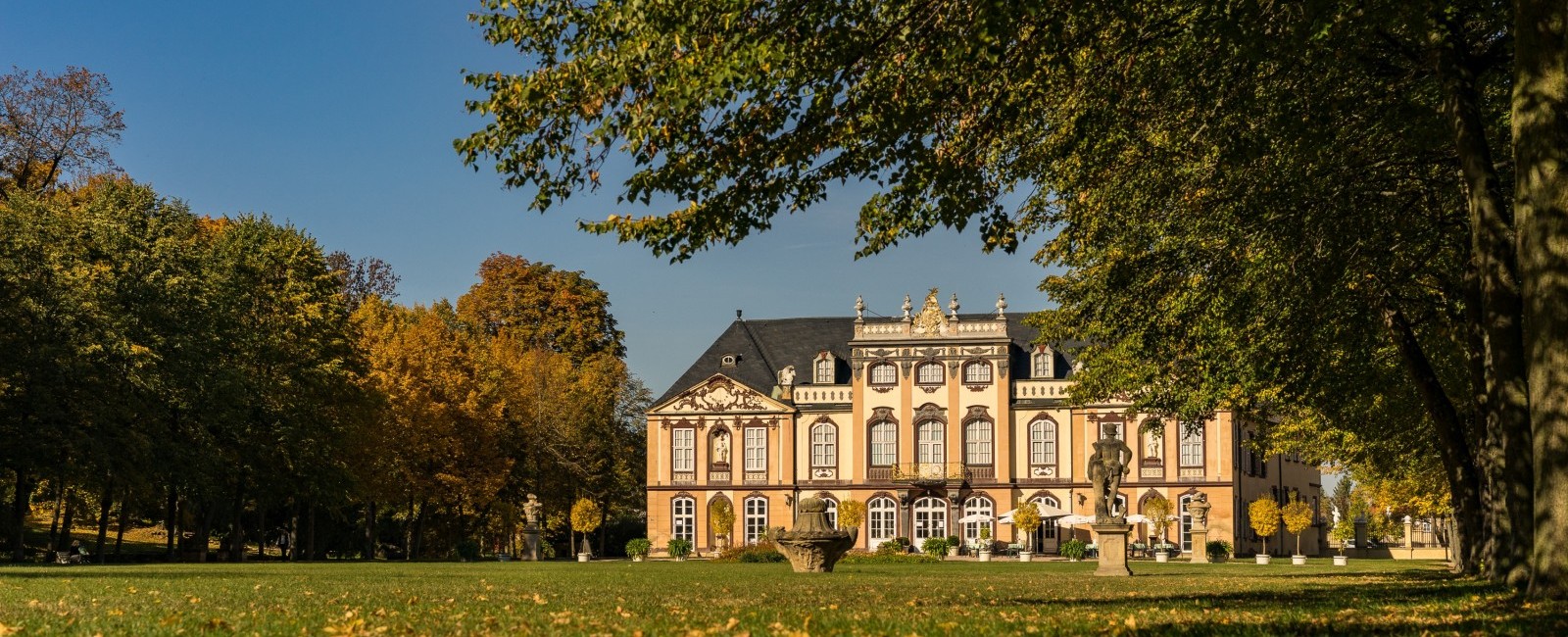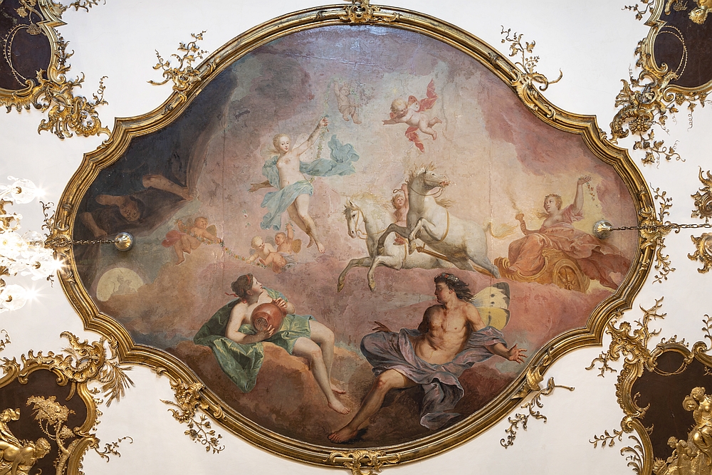 Rund zehn Kilometer südwestlich von Erfurt befindet sich Schloss Molsdorf. Es ist eine kleine Besonderheit unter den Thüringer Schlössern, was vor allem an seinem illustren Bauherrn liegt. Denn Gustav Adolf von Gotter (1692 – 1762) hatte eine aufsehenerregende Karriere hingelegt. In Gotha geboren als Sohn einer bürgerlichen Familie, trat er in den Dienst Herzog Friedrichs II. von Sachsen-Gotha-Altenburg, wurde außerordentlicher Gesandter in Wien, Hofrat und Geheimer Staatsrat. 1724 erhob ihn der Kaiser in den Adelsstand und ernannte ihn zum Freiherrn und Reichsgrafen. Zehn Jahre später krönte Graf Gotter seinen gesellschaftlichen Aufstieg mit dem Kauf von Schloss Molsdorf. Er verwandelte die einstige Wasserburg in ein barockes Lustschloss. Durch seine Kontakte zu den führenden Höfen seiner Zeit konnte er zur Umsetzung der Bauaufgabe bedeutende Künstler gewinnen, darunter den Weimarer Hofarchitekten Gottfried Heinrich Krohne und den Stuckateur Johann Baptist Pedrozzi.