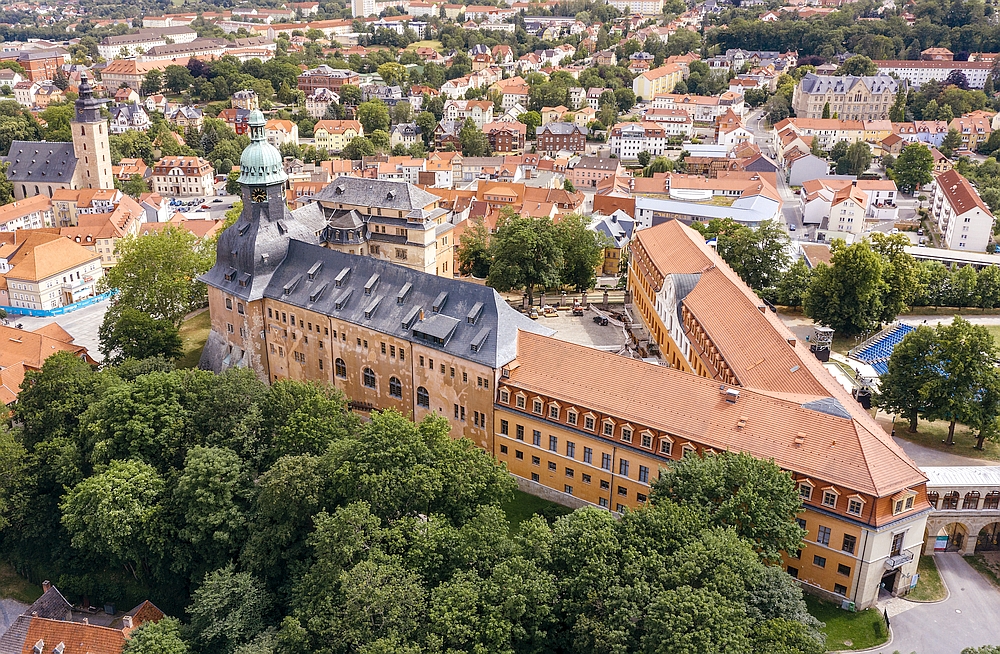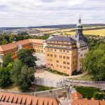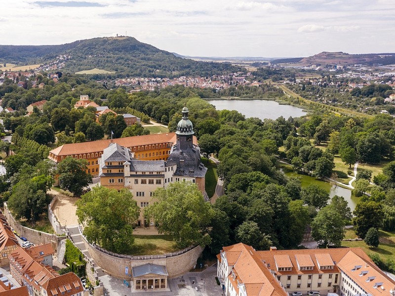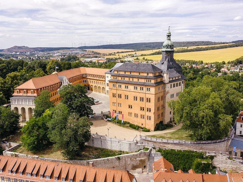Rund 560 Jahre lang herrschten die Grafen und Fürsten von Schwarzburg über die kleine Stadt am Kyffhäuser – und so verwundert es nicht, dass das Schloss ein Abbild ihrer langen Geschichte ist. Erstmals urkundlich erwähnt wurde Sondershausen im Jahr 1125, fiel später an die Grafen von Hohnstein und anschließend an die Grafen von Schwarzburg – das älteste edelfreie Geschlecht Thüringens. Diese ließen die mittelalterliche Burg zu einem repräsentativen Residenzschloss ausbauen, im Laufe der Jahrhunderte erweitern und den jeweiligen Bedürfnissen des Herrschers anpassen. Einer der wichtigsten Einschnitte in der Geschichte des Adelsgeschlechts erfolgte im Jahr 1697. Damals wurden die Grafen in den Reichsfürstenstand erhoben – und das Residenzschloss dem neuen Herrschaftsverständnis angepasst. Heute präsentiert sich Schloss Sondershausen als unregelmäßige Vierflügelanlage, in der sich verschiedene Epochen herrschaftlichen Bauens auf besondere Weise verbinden. Daher zählt Sondershausen zu den bau- und kunstgeschichtlich bedeutendsten Schlosskomplexen Thüringens. Auch wenn sich im Laufe der Jahrhunderte vieles veränderte, einer blieb stets erhalten – der Schlossturm. Er geht auf einen mittelalterlichen Wohnturm zurück und wurde in die späteren Bauten miteinbezogen, als Zeichen von Tradition und Herrschaft.