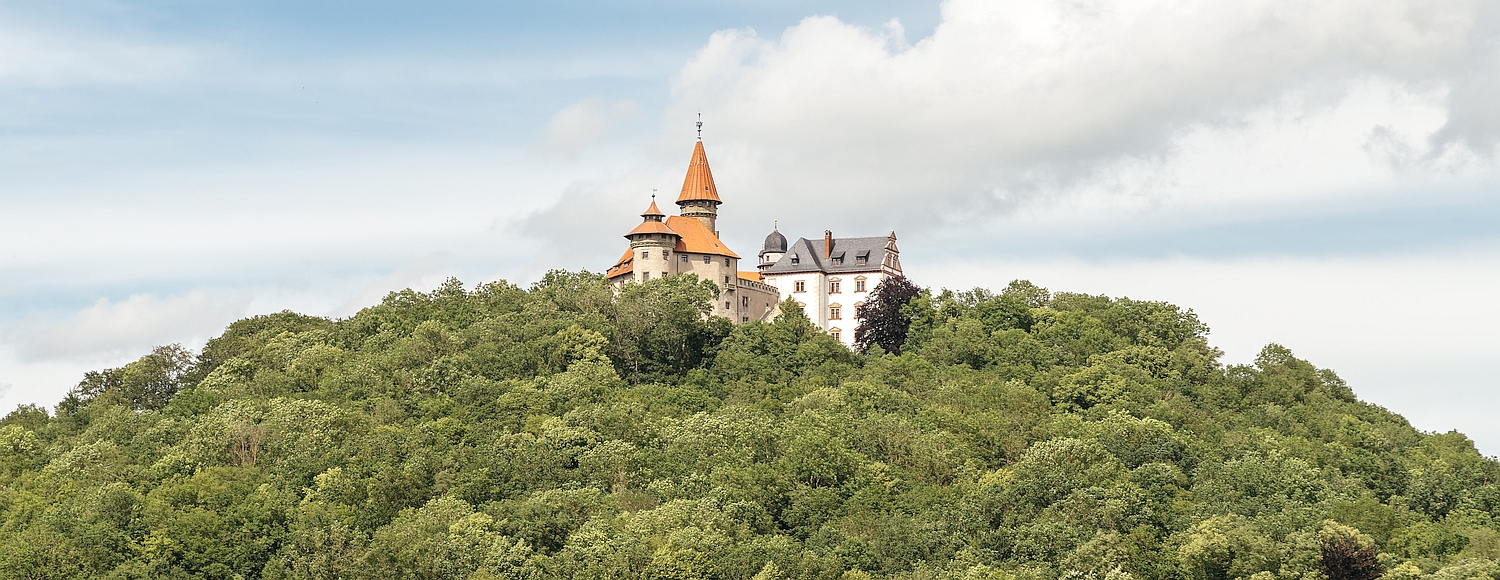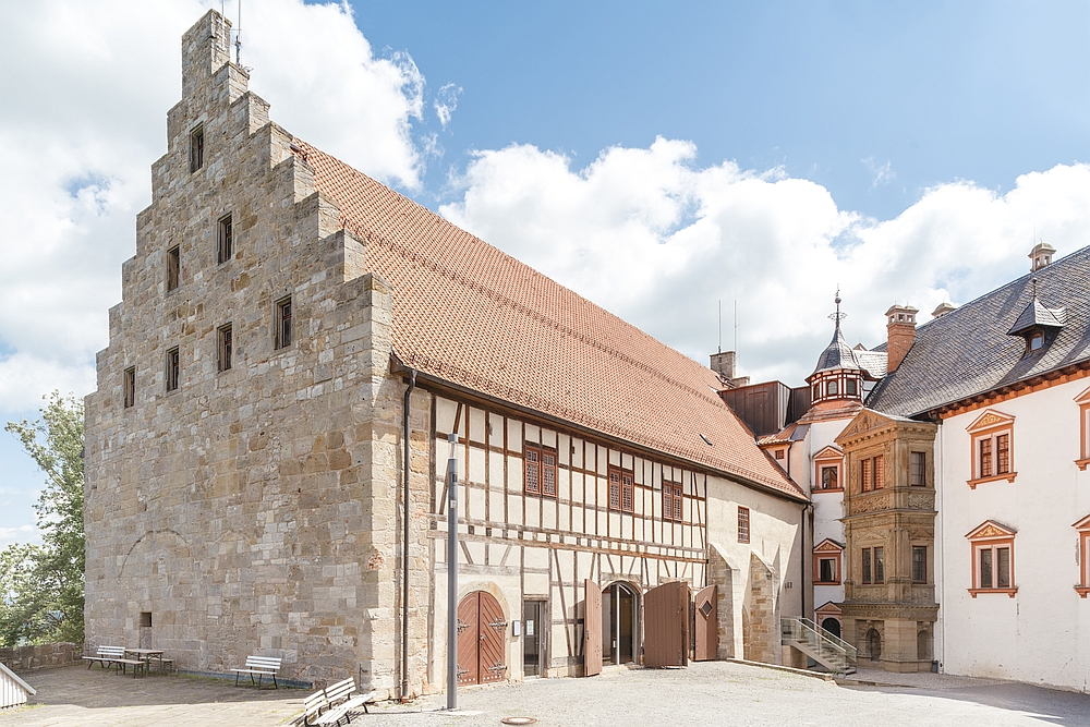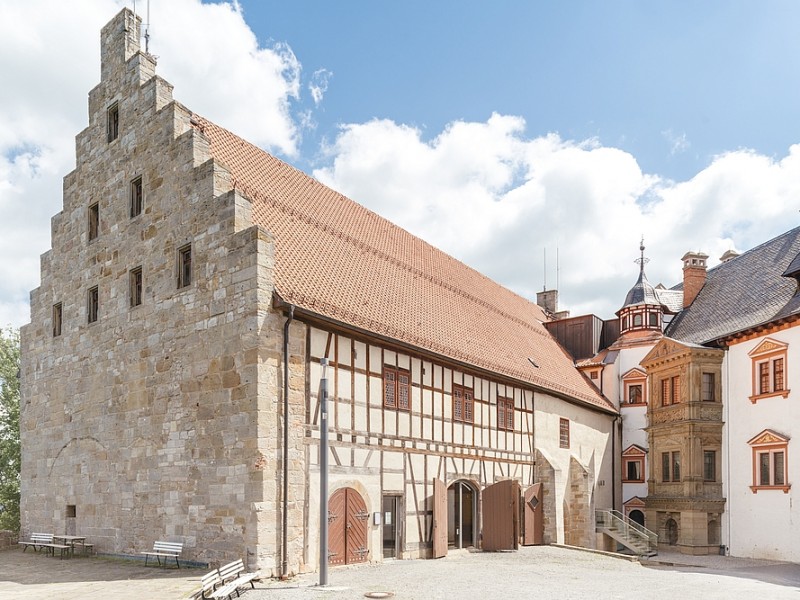 In seinem Testament wünschte sich Herzog Georg II. von Sachsen-Meiningen (1826-1914), dass „diese Feste in ihrem Zustand auch in der fernen Zukunft erhalten bleibe und zum Besten der Stadt Heldburg und der Umgebung einen Anziehungspunkt für fremde Besucher bilde (…)“. Fast wäre aus diesem Wunsch nichts geworden. Denn ein Feuer im Jahr 1982 zerstörte große Teile der Veste Heldburg. Nach umfangreichen Sanierungsarbeiten präsentiert sich die landschaftsbeherrschende Anlage jedoch wieder in altem Glanz – und beherbergt heute das Deutsche Burgenmuseum, wo Spannendes zur Funktion, Entwicklung und Nutzung von Burgen im deutschsprachigen Raum anhand von Originalen erklärt wird. Bauteile und Werkzeuge, aber auch Waffen und Rüstungen, Möbel, oder gar Spielzeug beleuchten verschiedene Aspekte des Burglebens. Den Beinamen „Fränkische Leuchte“ verdankt die Veste ihrer Lage im Süden Thüringens. Denn bis ins 18. Jahrhundert hinein wurde die Region dem heute benachbarten Franken zugerechnet. Die Burg selbst diente als wichtiger Wachposten für die Veste Coburg, zu der Sichtkontakt besteht. Nachts verständigte man sich zwischen den beiden Burgen mit weithin leuchtenden Feuerpfannen.