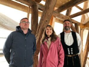 Im Richtspruch des Zimmermanns hieß es über den Turm: „Die Zeit wird vergehen / doch Du wirst noch stehen / hoch oben im Wind, /wenn wir längst nicht mehr sind.“ Projektleiter Jörg Kirsten von der STSG schlug anschließend den symbolischen letzten Holznagel ein.