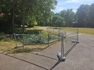 Abbildung: Brücke mit Teilabsperrung oberhalb der Herzoglichen Orangerie, Foto STSG, Jonathan Simon