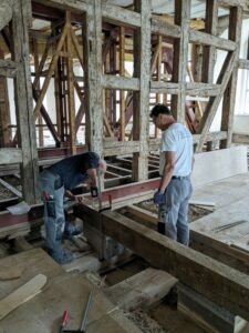 Abbildung: Mitarbeiter des BauhofH aus Nohra sichern den Deckenbereich über dem Ekhof-Theater, Foto: Stiftung Thüringer Schlösser und Gärten, Sabine Jeschke