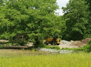 Die Entschlammung des Sees konnte bereits im Frühjahr abgeschlossen werden. Danach begann sofort die Sanierung von Teilen der Uferbefestigung, für die der See entleert bleiben muss. Die Arbeiten daran gehen zügiger voran als geplant, so dass über das Förderprojekt hinaus bis zur Wiederbefüllung weitere Uferabschnitte saniert werden könnten.