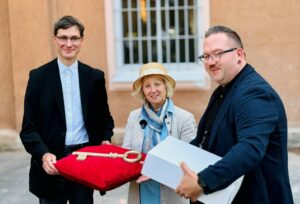– Schlüsselübergabe am Sammlungszentrum Henneberger Land: Dr. Frank Scholze (Direktor des NaturHistorischen Museums Schloss Bertholdsburg, Dr. Doris Fischer, Ingo Weidig (v.l.n.r.), Foto STSG, Uta Kolano